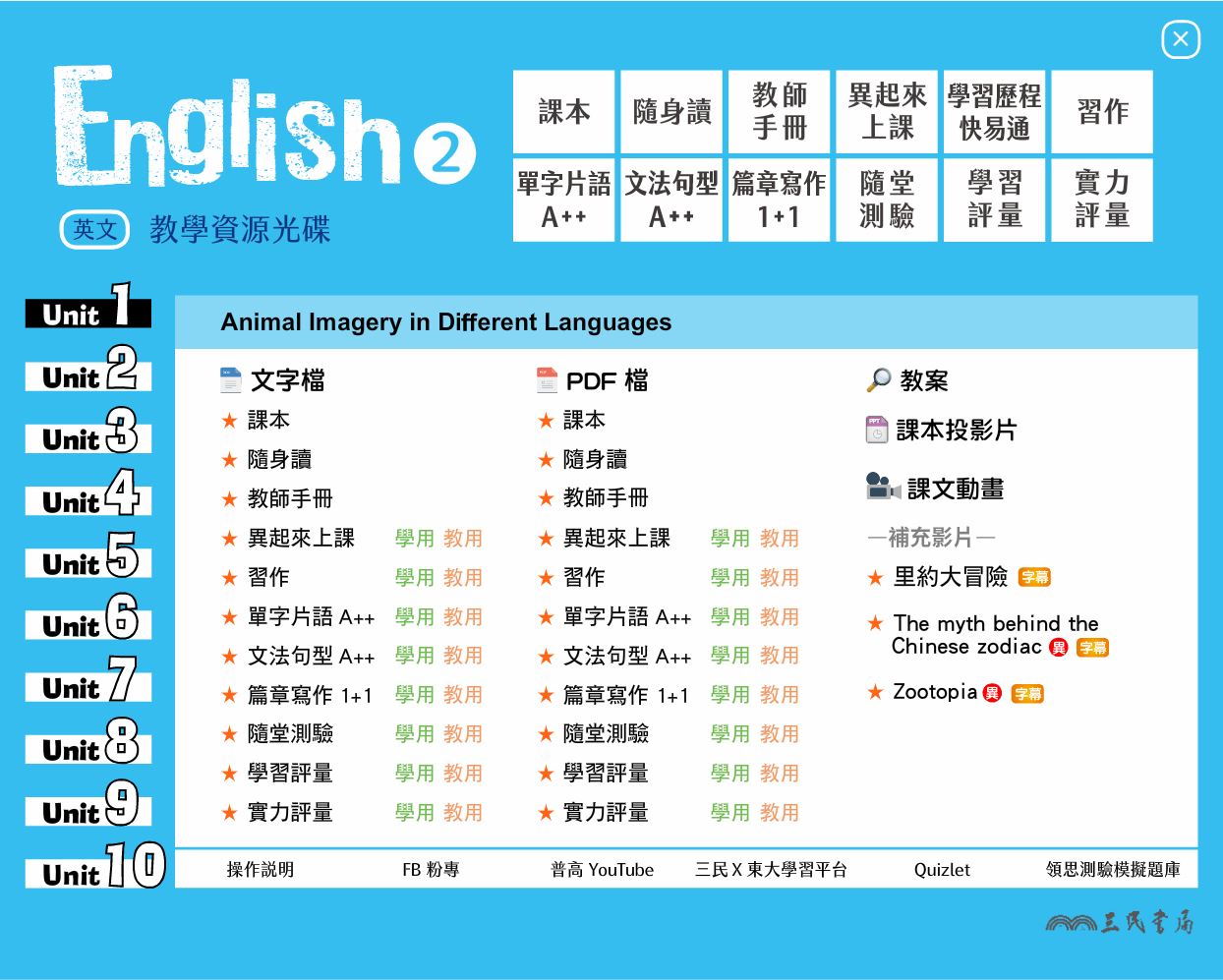111學年下學期 高中 三民版 英文科 1年級 教學光碟