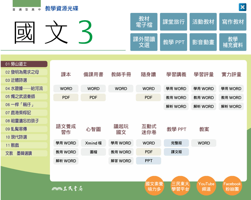 112學年上學期 高中 三民版 國文科 2年級 教學光碟