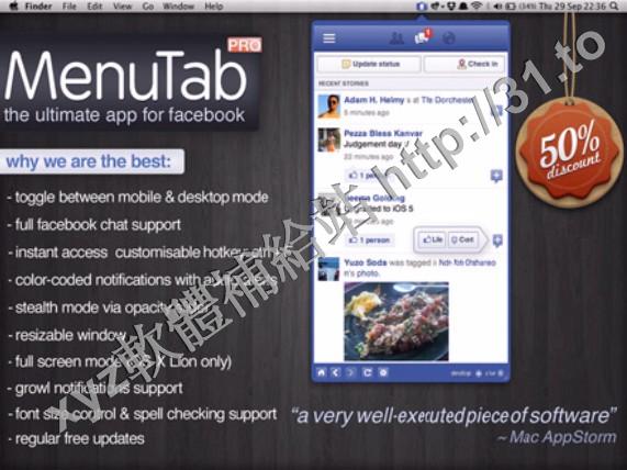 MenuTab Pro for Facebook v5.0 MacOSX 英文正式版(Facebook 快速訪問軟體)